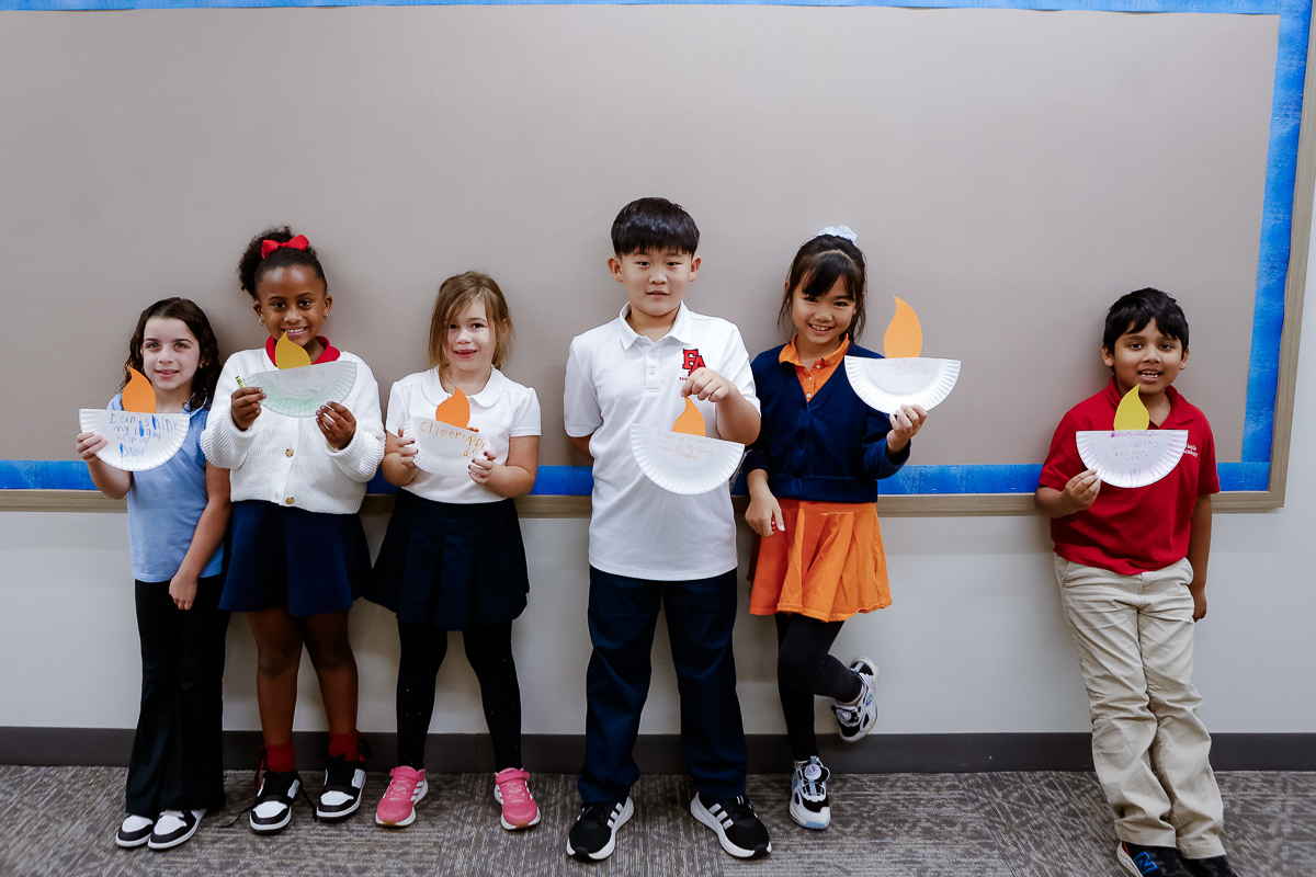 Upper School students Aleena Zaidi, Sydney Wang, Julian Yang, Armaan Parkash, Sharon Chen, and Shreya Kedia co-led a group inquiry, asking Lower School students two questions: Why is it important to shine your light with others? And what can you do to shine your light with others?